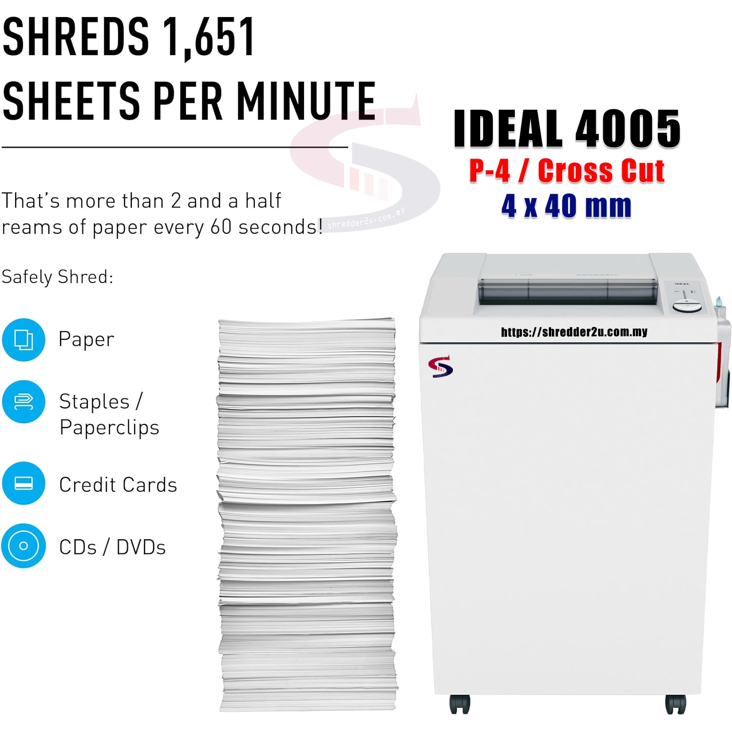 - Shred size (mm): 4x40mm